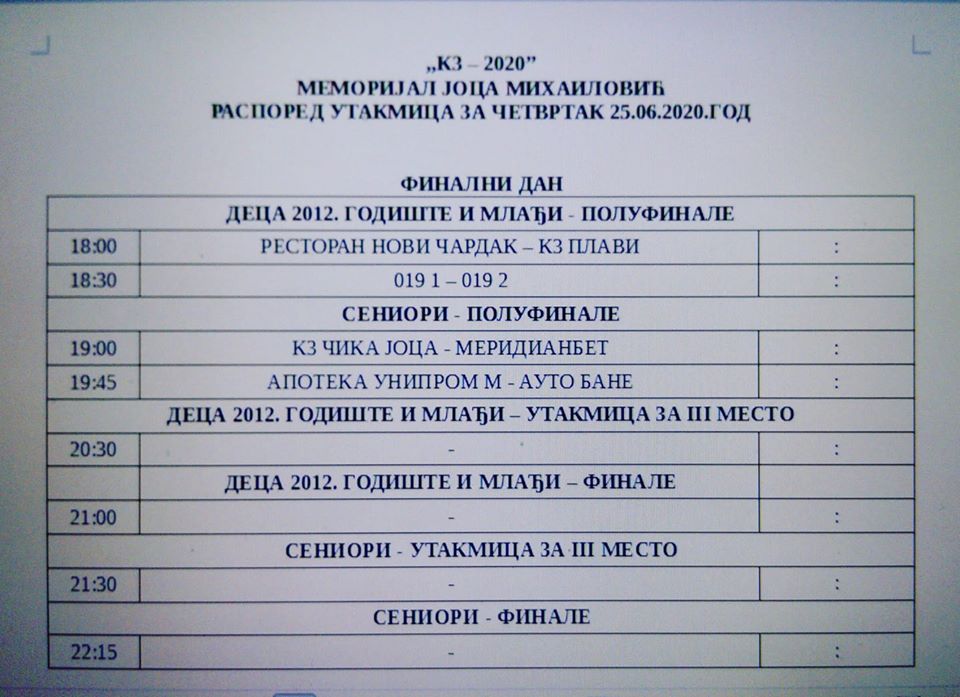 ЗАВРШНИЦА ТУРНИРА У КОТЛУЈЕВЦУ, ФИНАЛНИ ДАН МЕМОРИЈАЛА „ЈОЦА МИХАИЛОВИЋ К3“