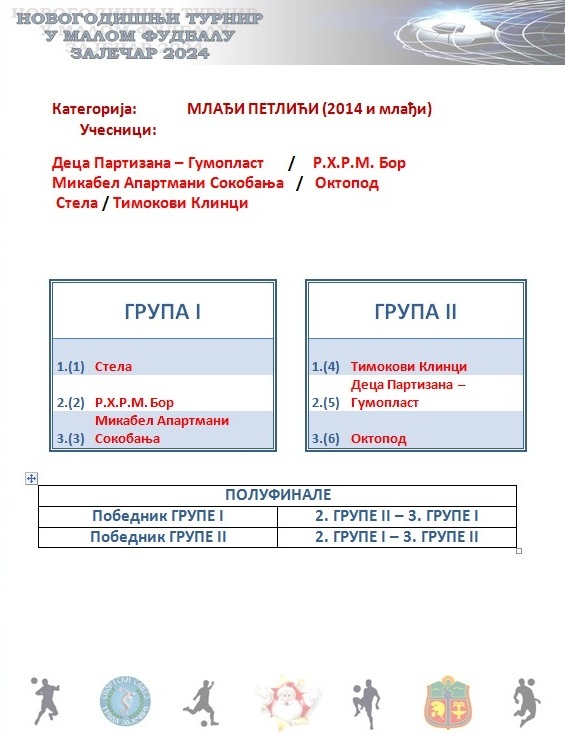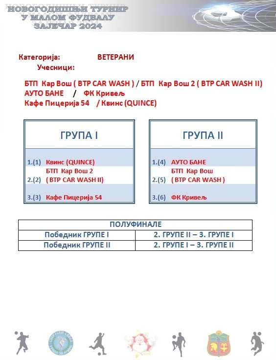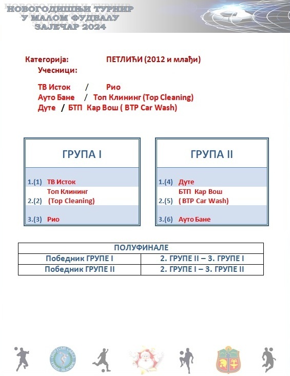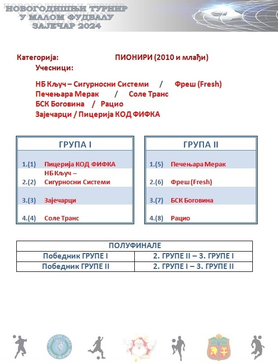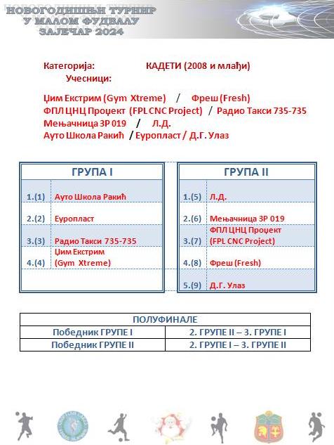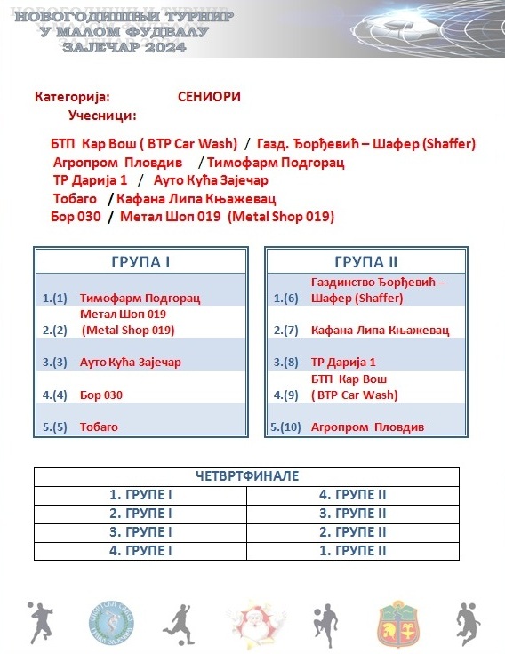 ЖРЕБ ЗА 30. НОВОГОДИШЊИ ТУРНИР „ЗАЈЕЧАР 2024“